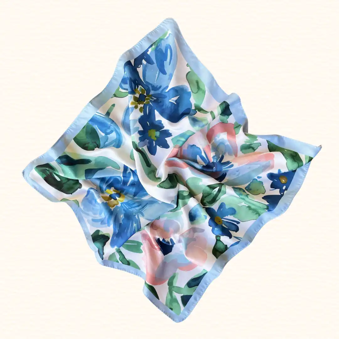 Mavi ve pembe tonları, gökyüzünün ve şafak vaktinin huzurlu buluşmasını yansıtırken, yeşilin dokunuşları doğanın yenileyici nefesini hatırlatır. Her deseni, yaz sabahlarının tazeliğini ve suyun sakin ritmini fısıldar.