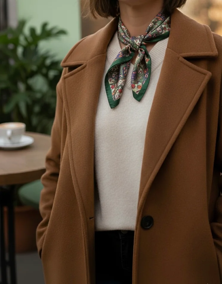 Tavsiye: Açık tonlu bir Veloya fular, metalik detaylı bir saatle birleştiğinde tam bir “parisien chic” havası yaratır.